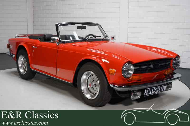 Dieser TR6 stammt von einem Enthusiasten, der den Klassiker seit nicht weniger als 20 Jahren besitzt. Der TR6 wurde ursprünglich als Vergaserversion ausgeliefert, wurde restauriert und die Restaurierung ist in einem umfangreichen Fotobericht mit Rechnungen dokumentiert. Dieser TR6 ist alles andere als Standard und verfügt über diverse technische Upgrades wie einen nachträglich eingebauten PI-Motor und PI-Differenzial, einstellbare Stofldämpfer, Scheibenbremsen vorne, Servolenkung, einen selbstdenkenden Kühler, K&N-Luftfilter, Overdrive, der sich beim Herunterschalten automatisch abschaltet und vieles mehr.